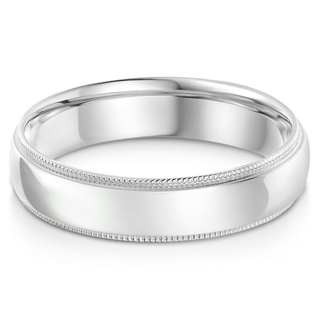 Ioka - 14k Solid White Gold 5mm Comfort Fit Milgrain Traditional Wedding Band Ring - size 9.5
