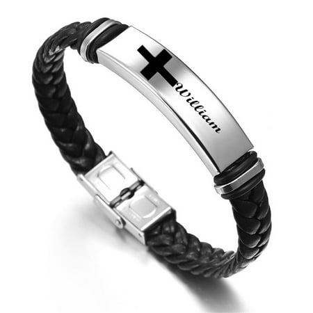 Customized Name (Donnie) with Cross Leather Bracelet Personalized Christ Jewelry for Men Women Amulet Gifts, 8.26'', Black