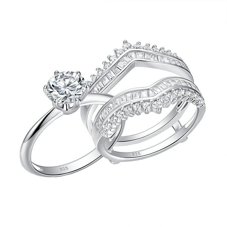 EAMTI 925 Sterling Silver Engagement Rings for Women 1.25CT Round Cut Solitaire Cubic Zirconia CZ Promise Rings Wedding Band for Her Silver White, Size 7.5