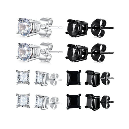 Vnox Cubic Zirconia Earrings Studs, Stainless Steel CZ Stud Earrings, Multipack Earrings for Women and Men