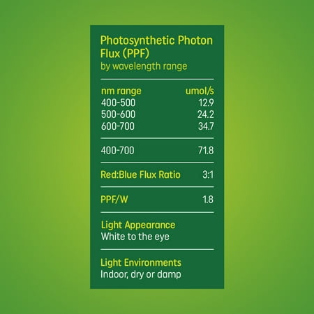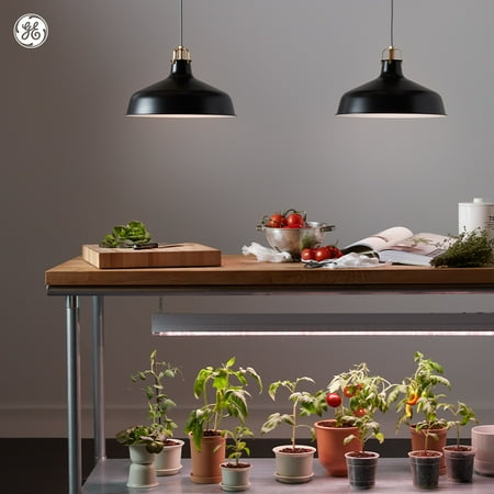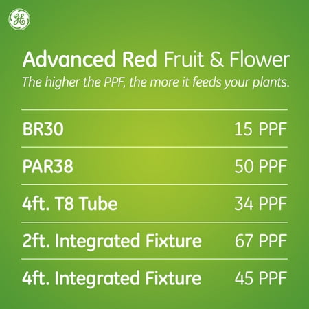 GE Grow Light LED plant integrated light fixture with Advanced Red Light Spectrum for Flowers and Fruit is designed to fit your plant's growth stage. GE's Grow Light uses an advanced red light spectrum that allows plant pigments to optimize their light harvesting and inspired by best practices used by professional growers. It's designed for mature plants at the fruiting or flowering growth stage. Compared to typical purple grow lights, the light features high PPF or Photosynthetic Photon Flux to provide more light for photosynthesis and growth. The white light appears more natural to the human eye. Use the Advanced Red Light Spectrum with high light plants like tomatoes, cucumbers, and peppers at the fruiting or flowering stage of growth.