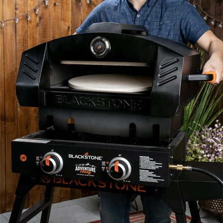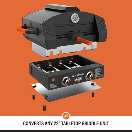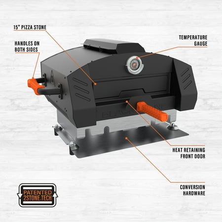 Imitate a classic brick oven with the Blackstone Outdoor Pizza Oven Conversion Add On. Convert any standard 22” Blackstone outdoor tabletop griddle into a fully functioning pizza oven. Two pizza stones means faster baking times, and evenly cooked pizza with a perfectly crispy crust. Unlike traditional pizza ovens, you won't have to continually turn the pizza as it bakes, just rotate the pizza once halfway through baking. Large, industrial handles with heat-resistant grips make this pizza oven add on practical and portable. Trap in heat of up to 700+ degrees Fahrenheit with the sliding door while smoke filters through the vents on top of the oven. Get outdoors and bake a fresh pizza to share with your family and friends. If you are a pizza lover, you need to experience how pizza was meant to be baked with this ingenious pizza oven converter.