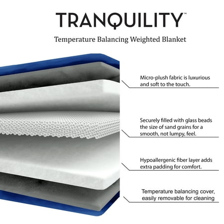 The Tranquility Kid's Weighted Blanket is the ideal sleep aid to help your child fall asleep faster, remain asleep through the night, and awake fully rested. This weighted blanket utilizes Deep Touch Pressure Therapy (DTP) through the application of gentle, even pressure across your body. The results mimic the feeling of being held, or hugged, to reduce anxiety and improve mood. This increased sense of calm helps the user to fall asleep easier and remain asleep through the night. The Tranquility Kid's Weighted Blanket features temperature balancing technology to keep you cool when it's hot, and warm when it's cold. For the best results, you should select a weight that is 10% of your child's total body weight and add 1 to 2 pounds. Isn't it time that your child's blanket did more than keep you warm