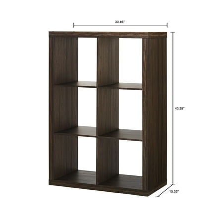 Add functionality and a great look to any room with the sleek style of the Better Homes & Gardens 6-Cube Storage Organizer. Available in multiple finishes, this cube organizer features six 13" x 15" x 13" compartments, perfectly sized for displaying books, collectibles, photography, artwork, storage bins and baskets (sold separately). The open back design of cubes makes managing cords and cables of electronic devices easy. This sturdy bookcase can stand vertically or horizontally to make the best use of your space. The top panel can support up to 100 lbs, and each cube supports up to 51 lbs. Combine it with other Better Homes & Gardens Storage Organizers and Shelves (sold separately) to create a complete storage and display system. Easy to assemble with included instructions and wall attachment safety system, the Better Homes & Gardens 6-Cube Storage Organizer is perfect for your office, living room, den, playroom, and more.