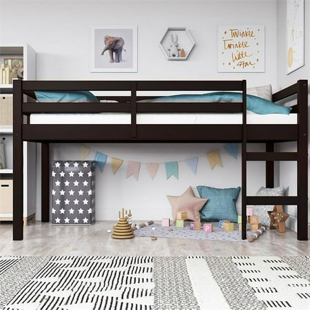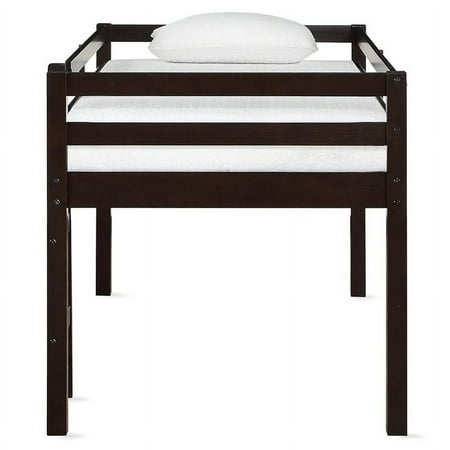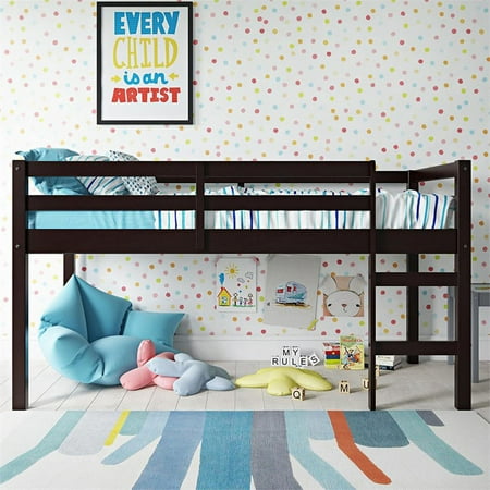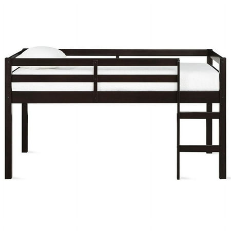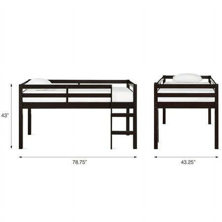 Let your child’s creativity run wild with the stylish fun and functional design of the DHP Milton Twin Loft Bed. With a sturdy wood construction and a bold espresso finish the Milton will easily fit into any new or existing decor bringing a simple traditional design that draws attention to its clean lines horizontal paneling and space saving silhouette. The low height ensure a safe climb at bedtime and combined with space below for storage reading building a fort or whatever their imaginations can dream up. With a compact footprint perfect for small spaces the Milton features an easy climb stepladder and a full-length guardrail for additional safety. The DHP Milton Twin Loft Bed brings a ‘Mission’ inspired style to your child or guest bedroom with an open airy feel that perfectly captures a fun and casual aesthetic. Traditional small space junior twin size loft bed for kids. Features a low height design and a sturdy wooden construction. Features horizontal paneling stepladder and full-length guardrail for safety. Support slats included no box spring necessary. Designed to accommodate a standard twin size mattress (sold separately). Assembly required hardware included. 1-year limited . Product Depth 43.00 Product Width 78.00 Product Height 43.00 Product Wieght 58.75- SKU: DRLAS1622