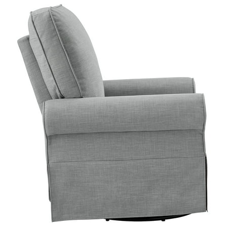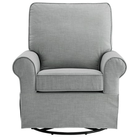 The Angel Line Natalie Upholstered Swivel Glider will help complete your nursery. After full assembly, it has a metal base that allows for both 360-degree swivel and smooth gliding functions. Calm your baby and soothe them to sleep in comfort and with ease. Though mainly constructed for nursery use, this recliner will easily fit well in any room in the house from the den to the basement. The neutral scheme of the gray fabric chair will match most decorative home palettes and make for a welcome addition to your home furniture.