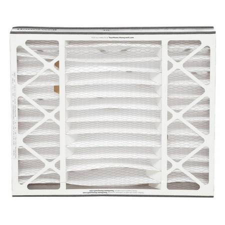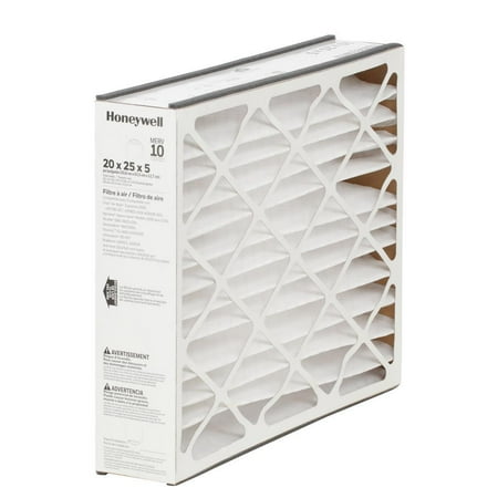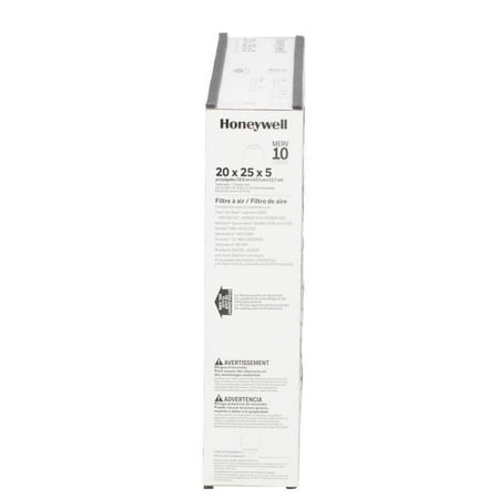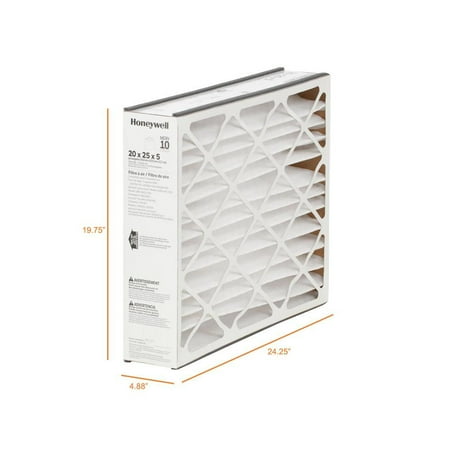 20 X 25 X 5 Pleated Air Filter FPR 8 (2-Pack) Air filter captures allergens, dust, pollen, mold, lint and dirt More efficient than fiberglass filters and lasts up to 12 months MERV 10 filter actual dimensions are 19.75 x 24.25 x 4.88 (in.) Today's tightly built homes trap dust, allergens and more, which explains why poor indoor air quality ranks among the top 5 environmental risks to public health. Honeywell Home's CF508D Air Filter filters household air particles such as: Common allergens, dust, pollen, mold spores, household lint and dirt and fibers. Plus it's easy to install and fits many brands of air filter boots. Contaminants Captured: Allergens,Bacteria,Dust Mites,Dust/Lint,Mold Spores,Most Smoke,Pet Dander,Pollen,Virus Carriers Longevity (months): 12 : 90-Day Pack Size: 2 Pack Air Filter Type: Non-Electrostatic Filter Performance Rating (FPR): 8-9 - Best Filter Frame Material: Cardboard Air Filter Features: Pleated Filter Material: Polypropylene MERV Rating (Minimum Efficiency Reporting Value): MERV 10 Air Filter Width (in.): 20 Air Filter Size: 20x25 Actual Product Width (in.): 19.75 Air Filter Depth (in.): 5 Actual Product Height (in.): 24.25 Actual Product Depth (in.): 4.875 Air Filter Height (in.): 25