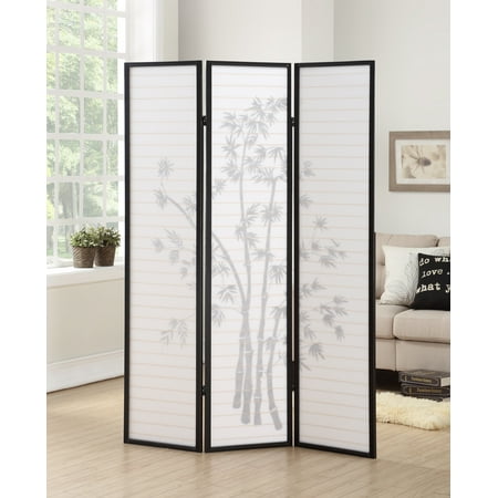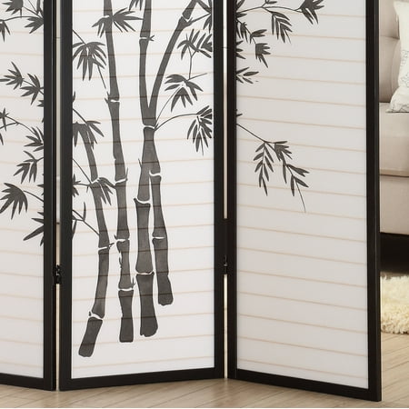 The Shoji room dividers are traditional Asian style screens made from translucent paper and a folding, multi-paneled, lattice-style wooden frame. Offered by Best Deal Stores. The design of these dividers is light-friendly, yet provides privacy at the same time. It may be used to divide a bedroom, or define a room/space. Whether it's for home or the work place these shoji screens are versatile, and an ingenious addition to any interior, making them a must-have for modern décor. These screens also feature a double action hinge, and fold easily for storage. No assembly is required. Features : Finish: Black Materials: Rice Paper, Wood Japanese-inspired room divider for creating privacy in small spaces, lightweight but stable frame made of wood in black finish Solid wood, plant print on one side Fully assembled; Photo may slightly different from actual item in terms of color due to the lighting during photo shooting or the monitor's display Specifications : Product Dimensions : (18"W x 3 Panel) ; (Fully Open) 71"H x 54"W x 1.5"D Product Weight : 8.82 lbs