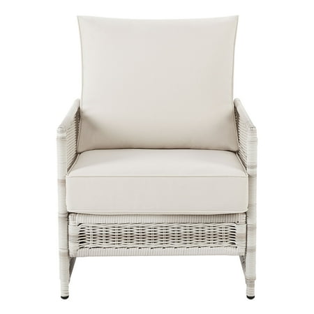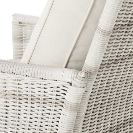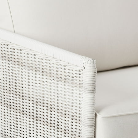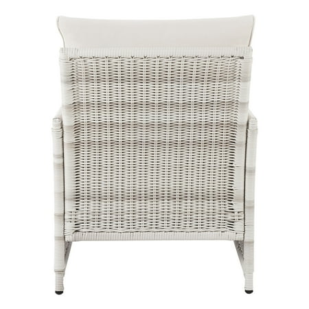 Kick back and relax in comfort and style with the Better Homes & Gardens Paige Outdoor Wicker Stationary Lounge Chairs, Set of 2, White. Featuring a high-back design with a white wicker and plush cushions, the neutral-toned outdoor lounge chairs complement any outdoor furniture and décor. The low maintenance, soft cushions are crafted with solution-dyed, 3M Scotchgard™-treated polyester fabric and weather-resistant fiberfill. A handwoven, weather-resistant, resin wicker perfectly wraps the sturdy, e-coated and powder-coated steel frame, enhancing the all-season durability. Instructions for easy assembly are included. The Paige Outdoor Wicker Stationary Lounge Chairs are part of the Better Homes & Gardens Paige outdoor furniture collection (other items sold separately) and makes a lovely addition to any porch, patio, or deck with its relaxing comfort, reliable strength, and timeless style. Assembly required.