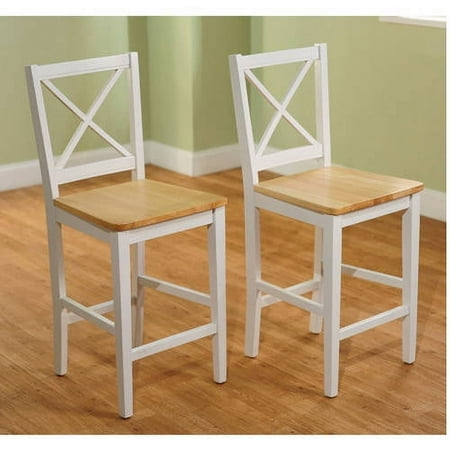 Update or add additional seating to your dining room table with these Virginia Cross-Back Stools. These counter-height stools come in a white / natural wood finish. Perfect for home bar use, this set of two 24" stools has a solid rubber wood construction and features a cross back design.