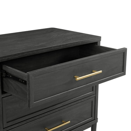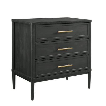✅ 3 Large Drawers 3 Large Drawers provide sufficient storage space for your books, cosmetics, accessories and other personal items. By storing all your items in one cabinet, you can keep your items clean and tidy, which is the perfect solution for small space storage. ✅ Quality Finish Materials The top surface of the drawer dresser you mentioned is made from premium materials with a smooth, polished finish that will add elegance and sophistication to any room. ✅ Shiny gold-colored handles The drawer handle is both functional and aesthetically pleasing. Its elegant and stylish design with a slim, ergonomic shape is easy to grip and comfortable to use. ✅ Stable metal feet They are made of metal, ensuring high durability and strength to resist the wear and tear caused by daily use.