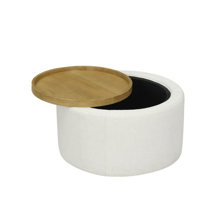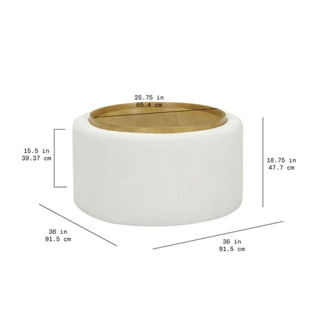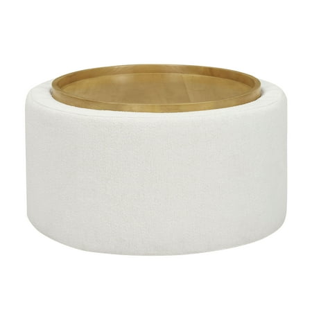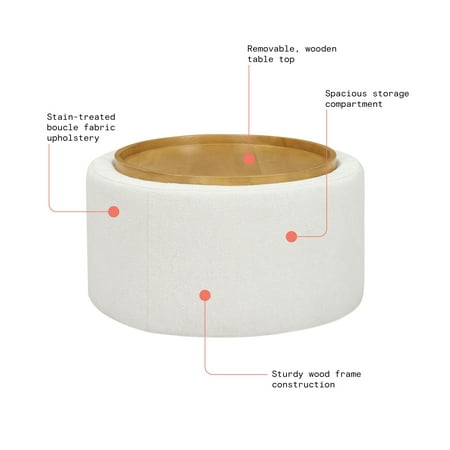 The Drew Stowaway Coffee Table combines style and service in a unique centerpiece for your living or sitting room. The removable wood top features attractive grain patterns and finish and acts as a serving tray with lip to keep items from sliding off. The bouclé fabric base will complement most room décors. It features a storage compartment that provides a practical solution for keeping your living space tidy and organized.
