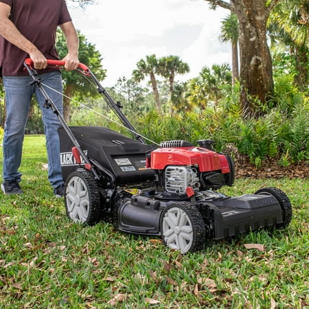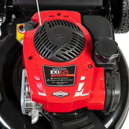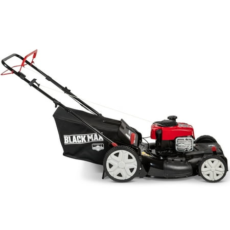 The Black Max 21" Gas Self Propelled Mower is a powerful, lightweight mower that fully assembles in five minutes or less. This mower features a powerful Briggs & Stratton 150cc 625 Series engine. Briggs & Stratton engines are proudly made in the for the highest quality and dependability. The Prime N Pull EZ Starting feature makes starting this lawn mower a breeze. Just prime the bulb three times and go. 11" high rear wheels provide great maneuverability through tough terrain and uneven surfaces. Two point, six position wheel height adjustment allows you adjust cutting height to meet your needs. The high domed solid steel deck provides superior mulching. A quick attach side discharge chute is also included.