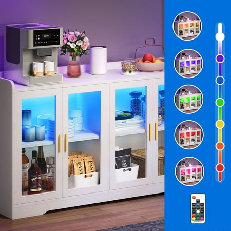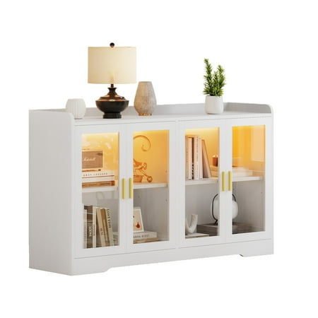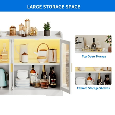 Introducing our versatile sideboard buffet designed to cater to a range of needs. This multifunctional piece effortlessly transitions between roles, serving as a kitchen buffet sideboard or a stylish TV stand in your living room. Additionally, it transforms into a delightful coffee bar cabinet, perfect for indulging in a rich cup of coffee during your leisurely afternoons. With two transparent acrylic glass doors, displaying and storing your collection becomes a breeze. The adjustable shelves offer flexibility in height, ensuring convenience and adaptability to suit your individual requirements. To safeguard your belongings, the cabinet features protective raised edges on the tabletop, preventing items from slipping off. To further enhance usability, we have incorporated a large-sized and user-friendly door handle. Elevate your space with this functional and aesthetically appealing sideboard buffet. Specification: Recommended Uses : Tea & Coffee Bar, Home Bar, Tools, Art & Crafts Product Dimensions: 15.7"D x 55.1"W x 33.4"H Special Feature: Sideboard, Kitchen Buffet Storage Cabinet, Buffet Cabinet, Adjustable Shelf Mounting Type: Floor Mount Room Type: Entryway, Kitchen, Living Room, Home Office, Dining Room Door Style: Transparent Acrylic Glass Door Weight Limit: 300 Pounds Included Components: 1 x Buffet Table ; 1 x Accessory Kit ;1 x Instructions