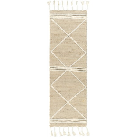 Our rugs are crafted with care and attention to detail, making them the perfect addition to any room in your home. Made with high quality materials, our rugs are durable and comfortable, providing a cozy feel underfoot. This Hauteloom rug is a beautiful bohemian, transitional runner rug, measuring at a 2'6" x 8' Runner, it can be comfortably used in hallway, kitchen. Decorate your home with this rug and enjoy it with pleasure. Brand: Hauteloom Collection: Gulnur Colors: Tan, Cream Style: Bohemian, Transitional Size: 2'6" x 8' Shape: Runner Material: Face: 60% Jute, 40% Wool Construction: Hand Woven Roomtype: Hallway, Kitchen Pile: No Pile Made in: India
