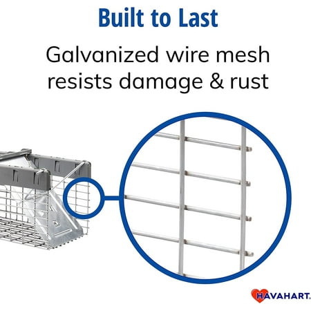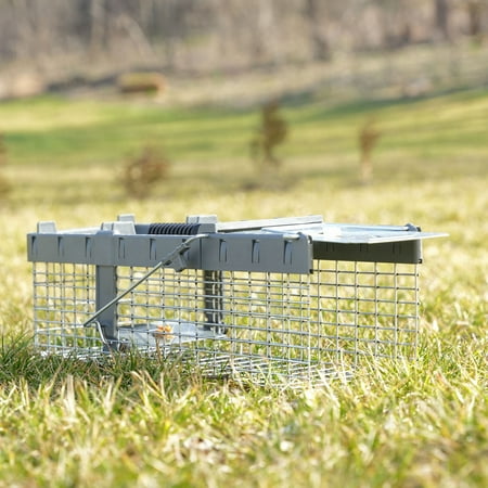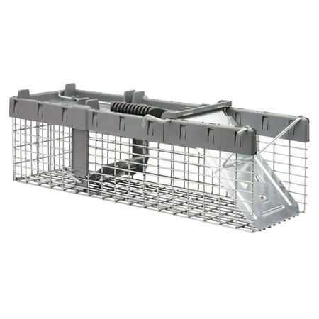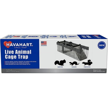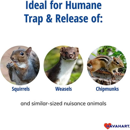 The Havahart Small 1-Door Live Animal Trap is the latest animal-trapping innovation from the #1 brand used by professionals. But you don't have to be a pro to use this trap. Its simple design allows trappers of all experience levels to catch and release squirrels, weasels, chipmunks, and similarly sized nuisance animals humanely and safely. This trap comes equipped with a solid door and sturdy plastic Safety Shield to protect users from direct contact with trapped animals. Meanwhile, the ergonomic Comfort Grip handle and lightweight design allow for easy carrying. To ensure durability, the Havahart Small 1-Door Live Animal Trap is constructed of sturdy plastic and galvanized wire mesh to resist rust and damage. The sensitive trip plate can be successfully triggered by the small target animals and is combined with a spring-loaded door to ensure quick, secure captures. Once caught, strong door locks keep animals securely in the cage, while smooth, rolled internal edges prevent anxious critters from injuring themselves.