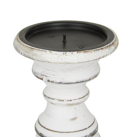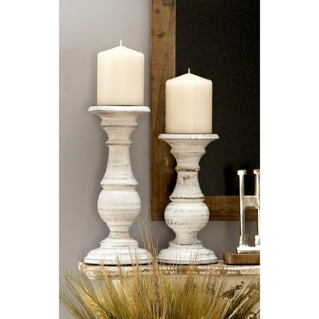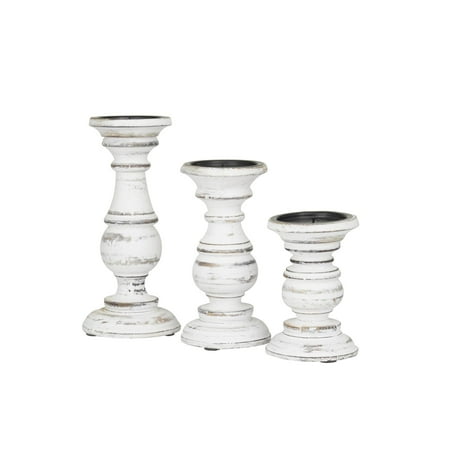 DecMode 3 Candle White Mango Wood Turned Style Pillar Candle Holder, Set of 3 is a unique addition to your stylish home. Give your space a radiant illumination with these beautifully crafted candle holders. Made with a sturdy base, it is perfect for creating an elegant atmosphere at your table top or mantel. Place this white set of 3 candle stands in your living room or dining area to elevate any occasion with its warm glow. Designed with felt or rubber stoppers at the base that prevent scratching furniture and table tops, as well as sliding around. Can hold 3 pillar candles, not included. This item ships in 1 carton. Mango wood candle holder makes a great gift for any occasion. Suitable for indoor use only. This item ships fully assembled in one piece. Made in India. This white colored mango wood candle stand comes as a set of 3. Traditional style.