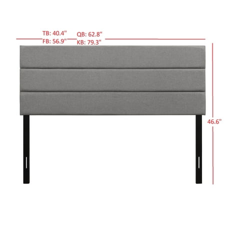 This chic headboard will modernize your bedroom look. It features with upholstered in high-quality fabric and foam-padded in the headboard provide extra cushion behind your head as you read. The headboard crafted with rectangular shape and charming horizontal channel tufting. You can choose from gray or warm gray to easily match your room decor. It can be adjusted to sit at two distinct heights.