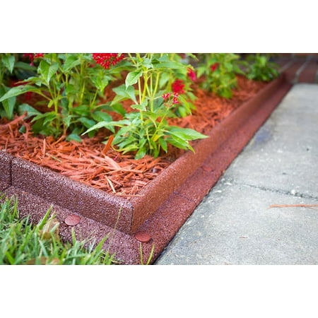 Give your outdoors a professional appearance with the Eco border Landscape Edging in Red. They're made of sturdy and flexible eco-friendly, 100 percent recycled rubber tires. They won't crack even under extreme weather conditions and are reusable from one season to the next. The border edgings are also non-toxic making them safe for use around children, therefore ideal for playgrounds and sandboxes. Plus, they feature an innovative mower edge design that eliminates the need for the trimmer allowing for a quick, easy installation. The Eco border Landscape Edgings in Red are available in a convenient 6-count package along with the necessary hardware.