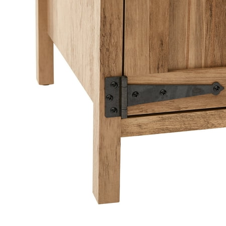With a rustic-inspired design and multiple storage options of the Mainstays Farmhouse TV Stand for TVs up to 70" makes it the perfect addition to your family room, den, living room or playroom. This sturdy media stand accommodates flat screen televisions up to 70" and 99 pounds. The open storage area on one end features an adjustable shelf for customizable display options. To satisfy all of your organization needs, the other end of this entertainment center features a closed storage compartment with a second adjustable shelf and is enclosed by a back panel with cutouts for cord and wire management. Complete the look with other pieces from the collection including the Mainstays Farmhouse Coffee Table and Side Table (sold separately).