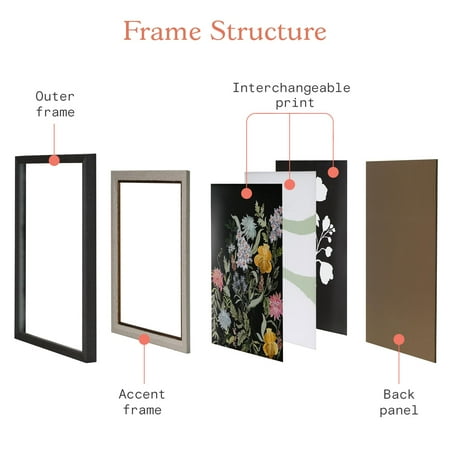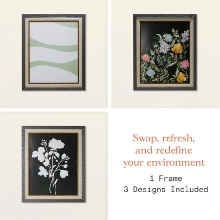 Change your wall decor to reflect a new theme of the day with this 3-piece interchangeable wall print set plus frame by Beautiful. Each set includes two bygone botanical motifs, one in charming color and the other in classic black and white, with a modern twist. The third print is a unique abstract featuring white waves on a light green background, perfect for adding a creative touch. The double-layered frame with a glass cover is well-constructed and securely fits all three prints stacked on top of each other, making it easy to store the ones you are not using. Try out this set in different rooms and instantly watch the space come to life. Hanging this piece is a breeze, thanks to the discreetly placed D-ring hanger on the back, ensuring an easy and balanced hang. Switching out the prints is also easy. Remove the back cover by moving the frame points, and select the image you want by moving it to the top of the stack!