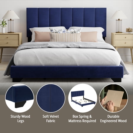 Set the stage for a plush retreat with the Reece Upholstered Bed by Hillsdale Living Essentials. Upholstered with soft-to-touch faux velvet fabric and graced with on trend channel-stitched detail, the thickly padded headboard cradles you to sleep. The adult bed’s clean lines and luxurious feel with be sure to transform your master or guest bedroom, and is easy to pair with traditional, transitional, glam or contemporary styling. Requires the use of a box spring and mattress, sold separately.
