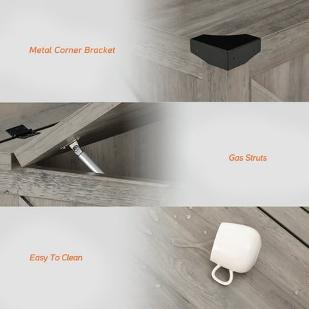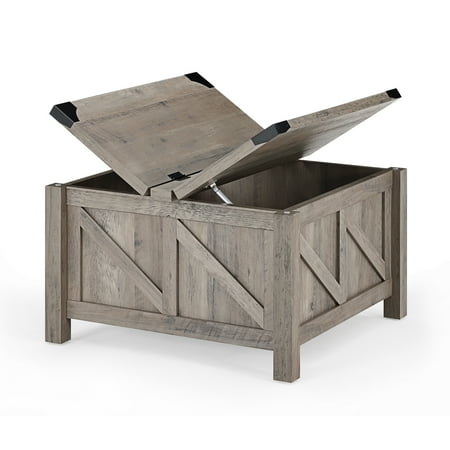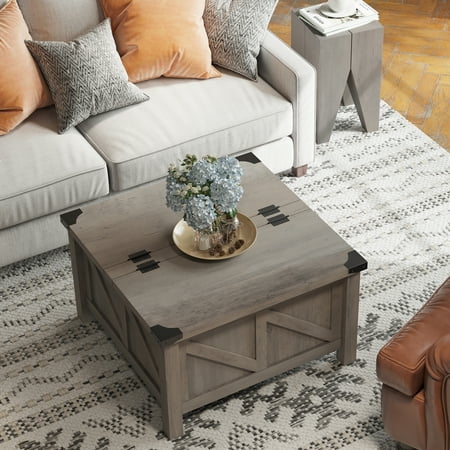 Wampat coffee table crafted from finest wood grain surface and the side is decorated with Z-shaped wooden strips. Perfect for modern farmhouse decorating style, adding beauty to your living room and a living atmosphere. The corners are decorated with riveted metal brackets to keep the corners intact.