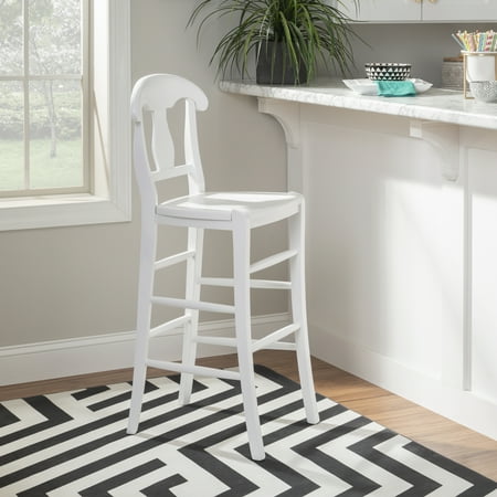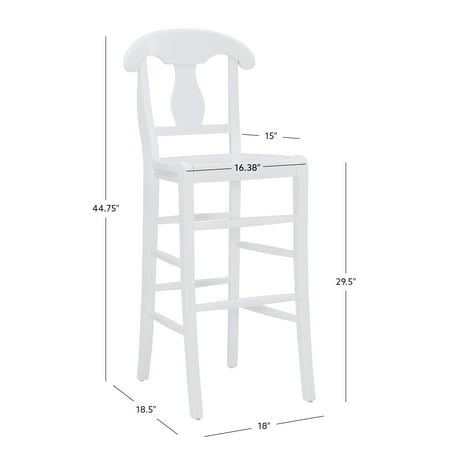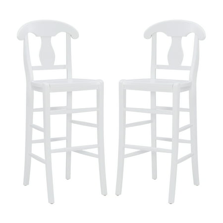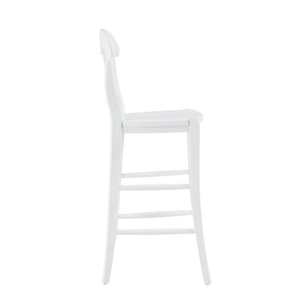 Embodying the charm and refinement of an old French cottage, this time honored Linon Ezra 29.5" Bar Stool makes for a defining piece in a variety of traditional settings. The sturdy beechwood frame is adorned with soft curves and an ornate splat back design to form an eye catching silhouette. The surface is painted white and coated in a glossy finish for long lasting shine and protection. The set of 2 arrives fully assembled, ready to elevate your farmhouse kitchen or home bar.