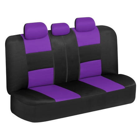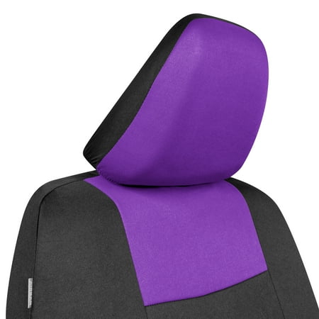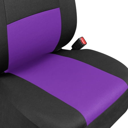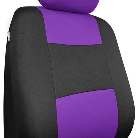 BDK PolyPro Car Seat Covers Full Set, Purple Two-Tone Front and Rear Split Bench Seat Covers for Cars Trucks SUV. These are the perfect seat covers for your new car, or even a car that’s just new-to-you. Our car seat covers provide protection against daily wear and tear that occurs inside of your vehicle. Add a layer of comfort & protection - package includes seat covers for front driver & passenger seats, rear bench cover. Premium "Rome" cloth material - feels like neoprene. Made for seats w/ Detachable headrests. Double stitched seams - toughest, durable & long lasting. 100% washable - breathable cloth prevents odors and dirt build up. Our seat covers are designed to fit most vehicles including cars, trucks, vans and SUVs. Please see the product images for fitment examples. Some additional work may be required to create a ‘perfect’ fit. This includes accommodations for seat belt buckles and other built-in features.