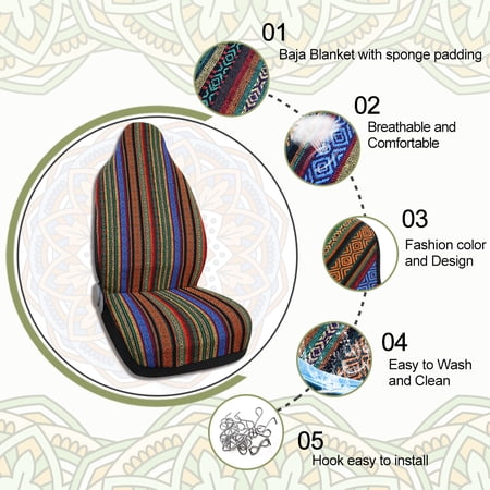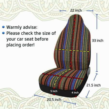 This Unique Bargains Durable Car Bucket Seat Cover features a fun Southwest-inspired design and an updated feel for comfort while protecting your seats from wear and tear. It is a great way to keep it cool with the traditional look and feel of a poncho. Fits most seats with built-in or adjustable headrests. A classic look and an updated feel, make your car seat more beautiful. The universal bucket seat cover helps protect a nice seat or disguise an old one. Fits most seats with built-in or adjustable headrests. Installations: Pull seat cover over the top of the seat, adjust and smooth to fit. Pull the flap tightly through the car seat crevice. Pull the bottom of the seat cover over the bottom of the seat. Attach the elastic straps with hooks on the bottom of the car seat, smooth to fit.