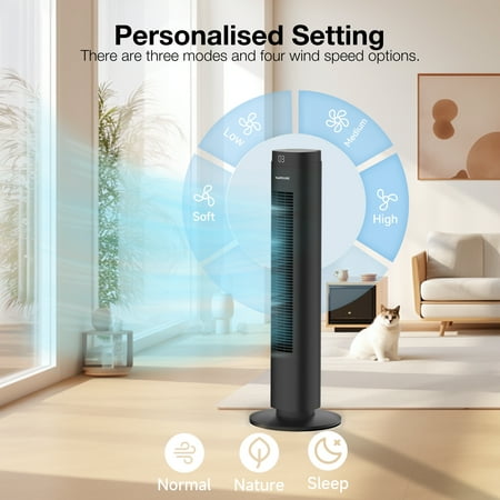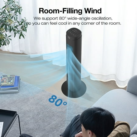 HUMSURE Tower Fan 30 Inch With Its 80 ° Wide Angle Swing Adopts An Innovative And Efficient Design, Providing A Range Of Practical Functions To Keep All Areas Of Your Home Cool And Comfortable. Its Space Saving Vertical Design Ensures Optimal Airflow Without Interfering With Your Room, Making It Perfect For Any Environment, From Comfortable Bedrooms To Busy Offices.
