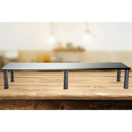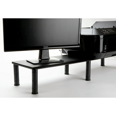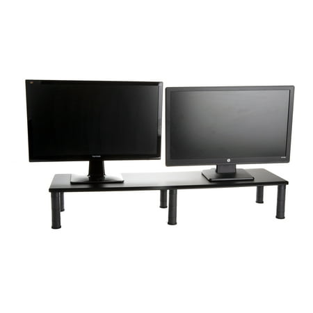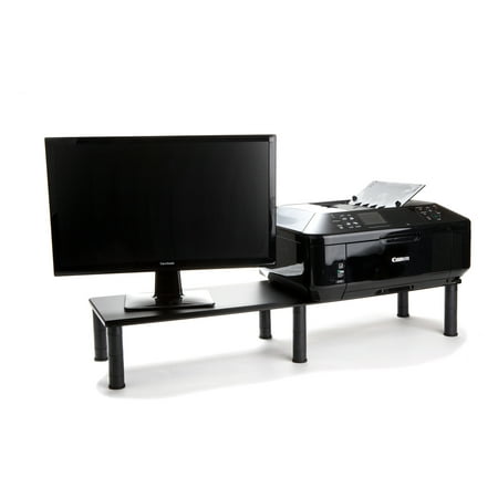 The Mind Reader Dual Computer screen riser easily supports your heaviest monitor(s), all in one computer/iMac, printers, speakers and more. Works with all types of media devices. Modern design, and sustainable MDF material that will last for years of usage. Optimal Viewing with 4 adjustable heights for your preferred viewing needs. The smallest height is 3.25 inches off the surface, after that you can raise up to 4.5 inches, 5.25 inches and finally a max height of 6.5 inches from the surface. Set your preferred height according to your office chair or your most comfortable optimal viewing. All legs are adjustable. Equipped with rubber grippers for all legs in order to keep the organizer stand in place. Don’t worry about your stand sliding all over the place when in use or when adding monitors, TV’s, speakers, or any other media devices.