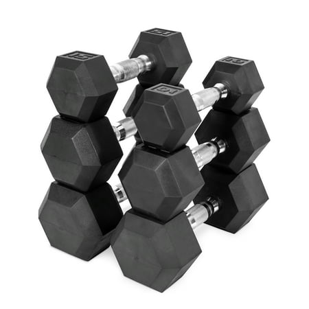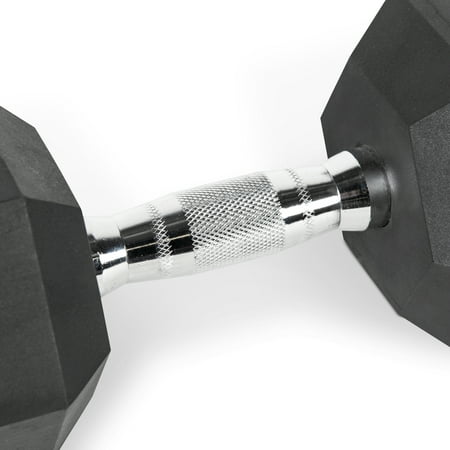 Enhance your workout routine with the CAP Barbell Coated Hex Dumbbell. This sturdy dumbbell is a premium quality weight that's ideal for home use. Made of solid cast iron with a protective black coating, it features an easy-to-grip handle and encased heads to prevent damage to floors. The ergo designed handle helps to reduce hand fatigue and maximize comfort, while the knurling prevents the dumbbell from slipping during workouts. The Hex shaped dumbbell heads ensure the dumbbell will not roll when set down, avoiding injuries and allowing for easy storage. Dumbbells can be used to exercise all major muscle groups, including arms, chest, back, abs, legs and core. Making them perfect for a full body workout. Sold individually.