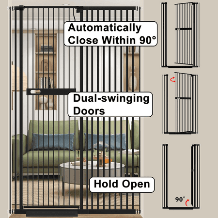 The Fairy Baby 70.8" Extra Tall Cat Pet Gate is a versatile and functional solution for pet owners seeking to create a safe and secure environment for their feline friends. This gate is specifically designed with cats in mind, offering an impressive height of 70.8 inches, ensuring that even the most agile and adventurous cats cannot jump over or climb through it. Crafted from durable black metal, this gate not only provides exceptional strength and stability but also adds a sleek and modern touch to any home decor. The pressure-mounted design eliminates the need for drilling and installation, making it easy to set up and move around as needed. With an adjustable width ranging from 29.99 to 45.62 inches, this gate can be seamlessly installed in various doorways, hallways, or entry points throughout your home. Its walk-through feature allows for convenient access for both humans and pets, ensuring that you can effortlessly navigate through the gate without the hassle of stepping over or removing it each time. Offering not only a secure barrier but also peace of mind, the Fairy Baby 70.8" Extra Tall Cat Pet Gate ensures that your beloved feline companion remains safely contained while still allowing them to observe their surroundings. Whether you have a curious kitten or an energetic adult cat, this gate is designed to keep them safe and sound within designated areas, preventing any potential accidents or unwanted roaming.