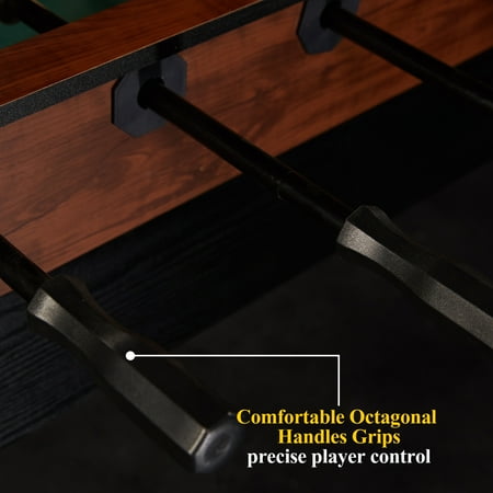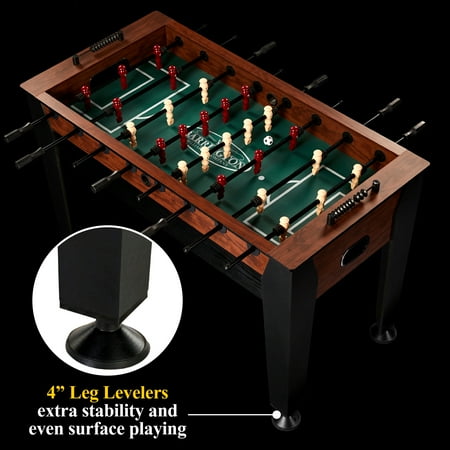 The Barrington 54" Furniture Style Foosball Game Table is a modern foosball table game with cool robot-style players, classic scoring, chrome accents, and steel rods. This regulation game table has a playing field made of high-quality medium density fiberboard and oversized 4-inch leg levelers to increase durability and stability. This foosball table is built to last and handle intense action and wild games. All accessories needed to play this fun game are included with this game. The Barrington 54" Furniture Style Foosball Game Table is a competitive game, so get your friends and family together for hours of fun and laughs.