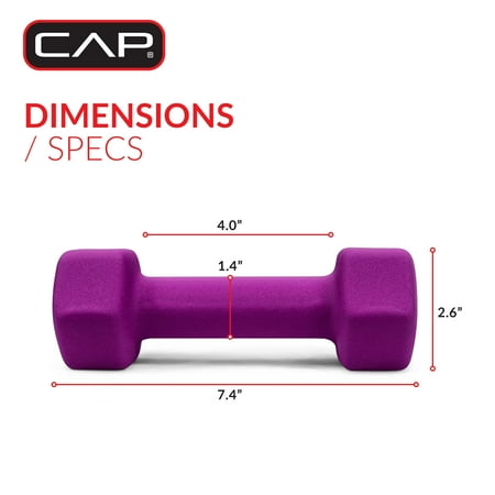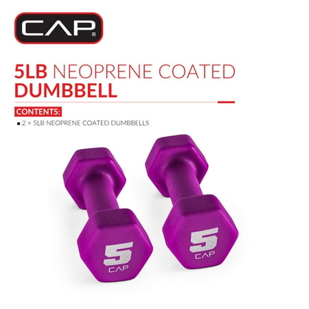 The CAP Barbell Neoprene Dumbbell Pairs is a convenient strength training tool for your home, office or gym. The durable cast iron core is covered in a thick neoprene coating to provide a firm and comfortable grip. The CAP dumbbell can be used to exercise all major muscle groups, including arms, chest, back, abs, legs and core. The benefits of dumbbell exercises include muscle building, improving core strength, boosting balance, providing better bone health, burning calories, increasing energy levels, enhancing overall mood and more. The neoprene-coated dumbbell is ideal for training individual muscle groups or major muscle groups, HIIT workouts and walking. SOLD IN PAIRS and is available in a variety of weights.