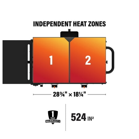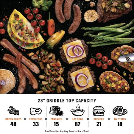 Making breakfast, lunch, and dinner is a breeze with the Blackstone Original 28” Omnivore Griddle with Hard Cover. Cook more efficiently when you use the two independently controlled heat zones to cook a few items at once. The 524 square inch griddle top boasts Omnivore Griddle Plate Technology that is tested to use less fuel to maintain high heat, have better thermal shock stability, and heat more evenly across the griddle top. This griddle comes with a protective hard cover that helps prevent scratching and other damage to the griddle plate so you can enjoy your griddle longer. Cook a variety of food for any meal on this versatile and powerful 28” Omnivore griddle and enjoy sharing the experience with family and friends.