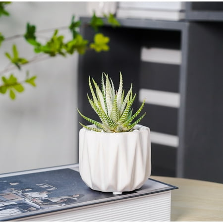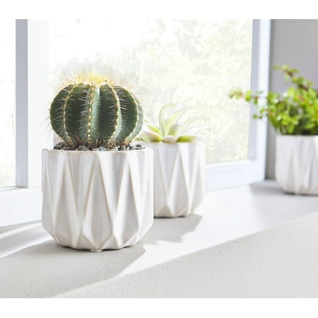 Better Homes & Gardens Devi 3in round planters gives any small-size plant the showcase it deserves. The modern-shaped planter is made of shiny white glaze. which have an artistic, one-of-a-kind feel. Perfect for indoor or outdoor use, the pot includes a convenient plug so you can nurture plants without water seeping out and ruining surfaces. Better Homes & Gardens Devi 3in round planter is a natural addition to your modern indoor or outdoor seating, dining, or living rooms.