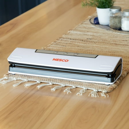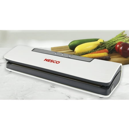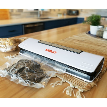 Prepare whole meals in advance and seal for later with the NESCO VS-C1 Classic Vacuum Sealer. Vacuum sealing helps keep foods fresh up to 5 times longer than traditional storage methods. This easy-to-use vacuum sealer is fully automatic with one touch operation and auto shut-off. The control panel illuminates when the sealer is in use and functions include vacuum and seal, seal only, pulse mode, and cancel. Pulse mode allows the user to control the suction helping prevent over-vacuuming and crushing of delicate foods. This sealer can accommodate up to an 11.8-inch wide bag providing the versatility for a wide range of sealing jobs and is compatible with most brands of vacuum sealer bags and rolls. 10 quart-sized bags are included to get you started. Save money in the kitchen by reducing food waste and trips to the grocery store. Preserve fresh foods longer with the NESCO VS-C1 Classic Vacuum Sealer.