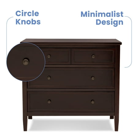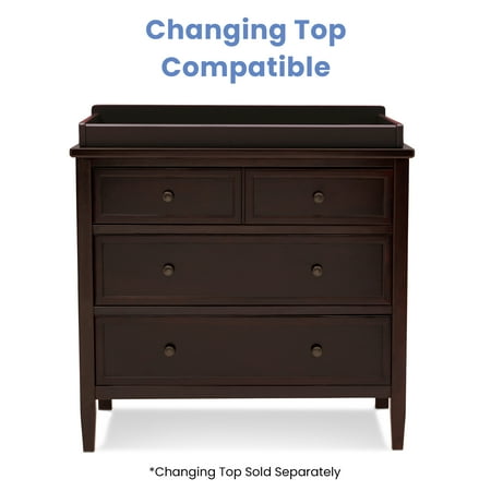 The Epic 3 Drawer Dresser with Interlocking Drawers by Delta Children is a spacious storage option that has ample room to store baby's clothes through the years. Featuring metal hardware and square tapered legs, it's finished with a wide top at the just-right height to hold a lamp or display cherished photos or mementos. Pair it with the coordinating Changing Topper #0550 (sold separately) to convert your dresser into a convenient changing table. For your child’s safety, this dresser is outfitted with an interlocking drawer system that limits the number of drawers that can be opened at one time. Coordinates with other Delta Children items in the same finish. This Delta Children dresser is tested to meet the current requirements of ASTM F2057, the mandatory CPSC safety standard that protects young children from furniture tip-over incidents. For your children’s safety, only purchase dressers that comply with this standard. For additional security, Delta Children strongly recommends that all dressers in your home be anchored; all Delta dressers include a wall anchor. To learn how to properly secure your dresser, please see the product assembly instructions or visit our website.