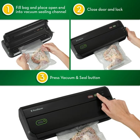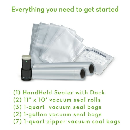 The FM2000 Vacuum Sealing System with bonus Handheld Vacuum Sealer, Bags & Rolls is a great solution to keep food fresh longer. Vacuum sealing with FoodSaver keeps food fresh up to 5x longer compared to ordinary storage methods. With simple operation and reliable sealing, plus the innovative removable drip tray to make cleaning fast and easy, this appliance is an ideal solution for long-term freezer preservation. The bonus Handheld Vacuum Sealer lets you enjoy all the benefits of vacuum sealing while taking up minimal counterspace and is compatible with all FoodSaver zipper bags, containers, and accessories. This Bonus Pack includes: one HandHeld Vacuum Sealer with Dock, two 11" x 10' vacuum seal rolls, three 1-quart vacuum seal bags, two 1-gallon vacuum seal bags, and seven 1-quart zipper vacuum seal bags.