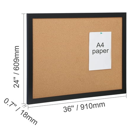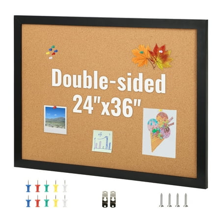 Product Description Pin your ideas to life with KFFKFF cork board! The KFFKFF bulletin board features a double-sided design, providing double the space to display your messages, photos and notes. The high-density cork surface is easy to nail and has strong self-healing capabilities, ensuring no unsightly holes are left. Great for office and home use. Large Posting Area With its large 36" x 24" mounting area, you can now enjoy plenty of space to post your thoughts, photos, timelines, and more! High-Density Cork Our premium, high-density cork surface ensures effortless nailing, and its powerful self-healing capabilities ensure no unsightly pinholes will appear, even after long-term use. Piece-Proof Cork board’s five-layer corrugated core provides superior rigidity, making it highly puncture-resistant. Smooth Frame Our notice boards come with a sleek black MDF frame and a smooth matte finish that's stunning and scratch-resistant so you can use it with confidence. Versatile Installation Wall cork boards can be easily hung at any desired height and installed in horizontal or vertical positions. Ubiquitous Usage Cork bulletin boards are widely used in homes, offices and schools for holding notes, messages, pictures, memos, calendars, menus, reminders, etc. Specifications Size: 24x36x0.7 in/609x910x18mm Posting Area: 22x34 in/559x864mm Material: Cork + Cane Fibre Board Weight: 5.3lbs/2.40 kg Package Content 1 x Cork Board 10 x Pushpin 2 x Hoist pendant 4 x Screw