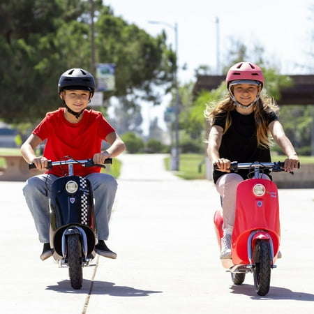 You're all about style, retro or vintage, and the color story is just as important to you. With the Pocket Mod, the hub-driven electric motor powers riders up to 15 mph (24 km/h) in the default high speed mode. A high/low speed control switch allows the selection of the right maximum speed, up to 10 mph (16 km/h) in the low speed mode for younger children and beginner riders. With a secret storage compartment, dual kickstand, padded seat, and controls at your fingertips – it all adds up to an amazing ride. Sit back, relax, and enjoy the bliss.