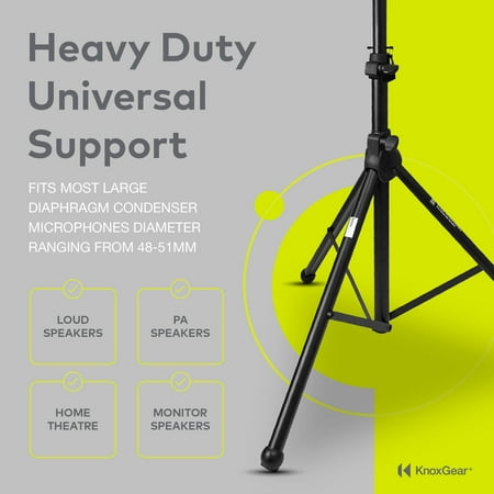 <p>Be sure that your sound reaches your entire audience! With the Adjustable Air Lowering PA Speaker Stand from Knox Gear you can turn up the jams. This professional speaker stand features non-slip rubber feet. Built in air cushioning provides safety and prevents speaker drops or falls. It’s easily adjustable and reaches over 6 feet tall so you can project quality sound clearly. Bring people together with the sound of clear music.</p><p><strong>Air Cushioned for Extra Safety & Support</strong></p><p>Don’t worry about heavy speakers or monitors dropping or falling. This pole features a built in pneumatic shock absorber that works to provide extra safety and security. High-quality materials and an ergonomic design make it easy for professional or ammeters to use. It’s portable, foldable and easily adjustable so you can take the show on the road. Knobs make it easy to move the pole up and down and non-slip rubber feet provide stability. It has a locking pin for secure placement.</p><p><strong>Perfect For Sound and Audio Performance</strong></p><p>Our professional quality tools for sound systems make every performance an experience your audience will never forget. It’s perfect for DJ’s, musicians, MCs, speakers and all other entertainers. Use it for parties, weddings, clubs, raves and all other events. With these heavy-duty pole stands you can project loud sound in any venue ballroom or club.</p><p><strong>About Us</strong></p><p>Knox Gear offers products that offer simple solutions for your electronic needs, because we believe that having quality electronics shouldn’t break your budget. Every Knox Gear product comes with a 12 month guarantee.</p>