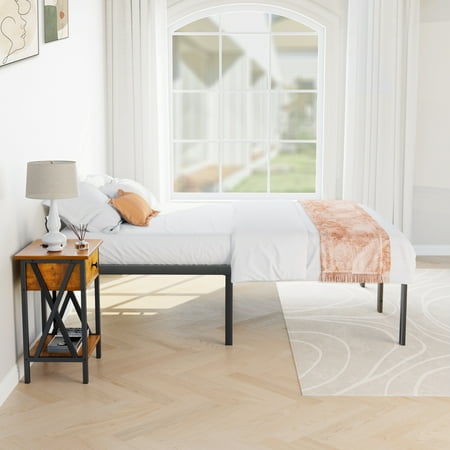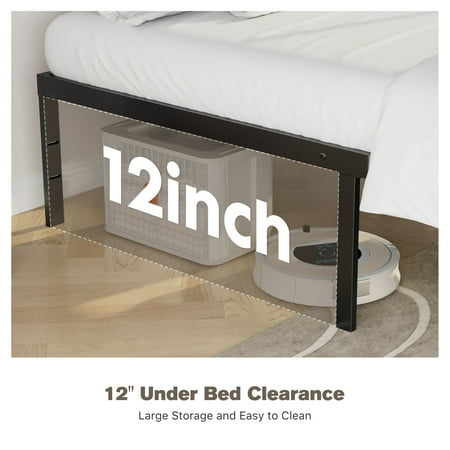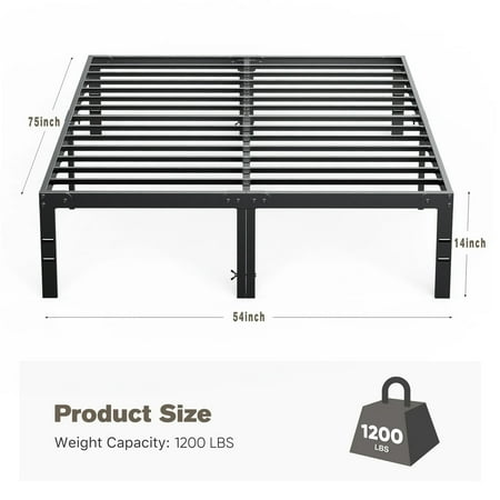 Introducing the edx Bed Frame - Full Size Heavy Duty Platform Bed with Underbed Storage, 14-Inch High Steel Slat Support, Non-Slip Design, No Box Spring Required, your perfect solution for a comfortable and worry-free sleep. Crafted with high-grade stainless steel, this bed frame offers unbeatable durability and stability, capable of supporting up to 1200 pounds, ensuring it lasts for years to come. Its sleek black finish adds a stylish touch to any bedroom decor, and with four available sizes, you can choose the perfect fit for your needs.Our Bed Frame is not just strong and sturdy, but it is also designed for excellent stability. Say goodbye to noisy nights as our frame provides a firm base for your mattress, allowing you to sleep peacefully without any creaking sounds. Toss and turn as much as you want, our bed frame will stay put.We understand that storage is essential, so we have included a generous 14 inches of storage space underneath the bed frame. You can store bedding, clothing, or any other items, keeping your bedroom organized and clutter-free. Maximize every inch of your space with our thoughtful design.Adding a headboard to your bed frame has never been easier. With two support legs at the head of the frame, you can easily attach your favorite headboard. The legs come pre-drilled, saving you time and making the installation process a breeze. Give your bedroom the perfect finishing touch with a stylish headboard.Assembling your new bed frame will be quick and hassle-free. We value your time, so we have provided easy-to-follow instructions and included all the necessary hardware. Within no time, you'll have your new bed frame set up and ready for a comfortable night's sleep.Upgrade your bedroom setup today with the Bed Frame. Experience unparalleled comfort, convenience, and durability that only our product can provide. Don't wait any longer, transform your bedroom into a haven of relaxation with our reliable and stylish bed frame.