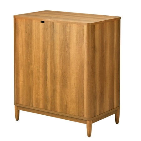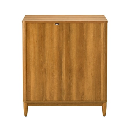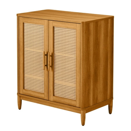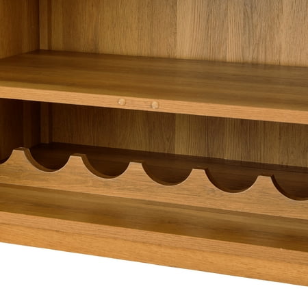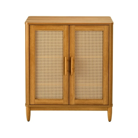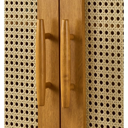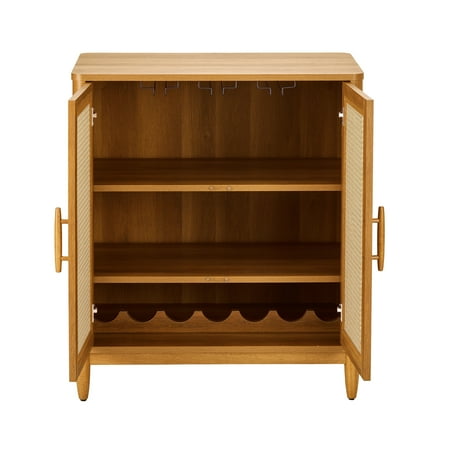 Transform any dining room with the charming island appeal of this stunning rattan bar cabinet from the Better Homes and Gardens Springwood collection. Its tropical-inspired design features decorative rattan inserts and framed doors that open to reveal ample storage space, making it the perfect choice for entertaining guests or enjoying a quiet evening at home. This 2-door bar cabinet comes with three metal racks that hold stemware glasses, plus a lower shelf with a scalloped rail that can accommodate up to seven wine bottles. This rattan base decorative bar cabinet has two adjustable shelves that can be customized to hold glass bottles, stemware, or any other bar essentials. The solid wood feet with adjustable levelers ensure stability and balance on any surface. With an elegant charcoal finish, this 2-door rattan storage bar cabinet is not only functional, but also a stylish addition to any home décor. This Better Homes & Gardens Springwood Caning Bar Cabinet dining room storage cabinet is perfect for elevating the home bar experience and impressing guests.