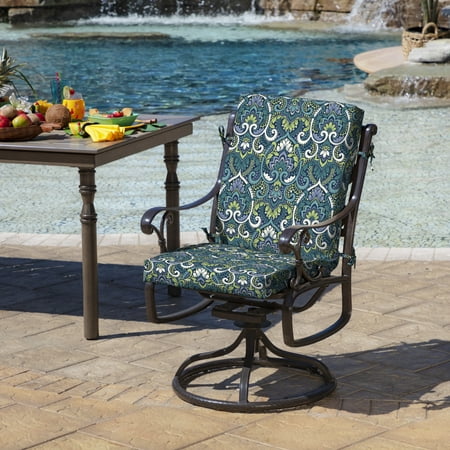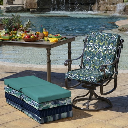 The ARDEN Outdoor Highback Dining Chair Cushion is made with long-lasting outdoor polyester fabric with C0 treatment and partially recycled polyester fill. Creating a comfortable cushion that is eco-friendly and Skin-safe for your family. This outdoor chair cushion measures 20 in W x 44 in H x 3.5 in T (seat cushion is 20 in W x 20 in L and seat back is 20 in W x 24 in L). The 100% printed polyester outdoor fabric resists fading, so your patio cushion looks vibrant for longer. Skin-safe C0 water protection helps your Dining Chair cushion withstand continued outdoor use, while easy cleaning with just soap and water for low-maintenance upkeep. Four sets of ties make sure your outdoor cushion stays firmly in place. Inside this outdoor chair cushion is partially recycled polyester fill helps it retain shape and provide long-lasting comfort during outdoor use. Although this Midback cushion is both water and UV-resistant, we recommend bringing it indoors when it rains or when not in use to preserve its lifespan and keep it looking beautiful.