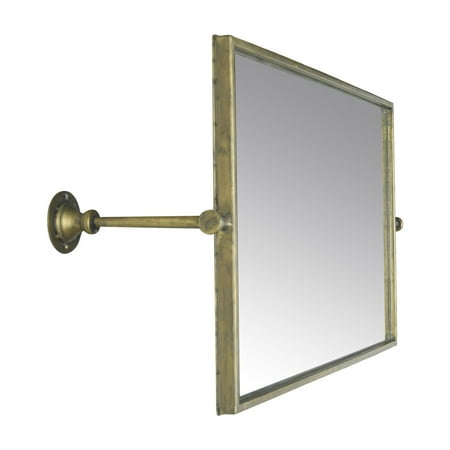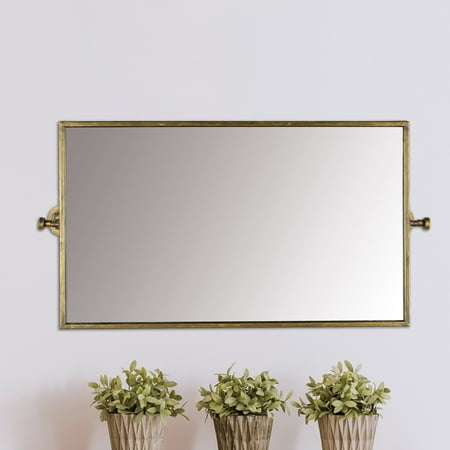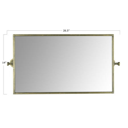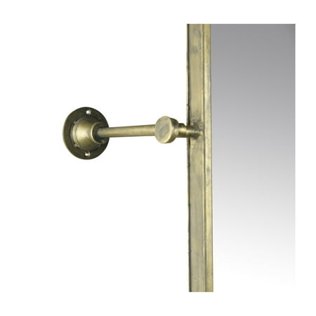 This antique gold metal rectangle wall mirror adds style and depth to any living space. This artfully crafted mirror features a modern metal frame and industrial wall brackets in an antique gold finish, creating a stunning visual effect. The mirror is made of metal, glass, and reclaimed wood for a durable and stylish look. The mirror has hanging mechanisms for easy installation and can be hung horizontally or vertically. This mirror is perfect for adding a touch of glamour and sophistication to any living room, bedroom, or hallway. It measures 14 inches wide by 27.75 inches high, making it a perfect size for any space. This mirror is a stunning piece that will add a touch of sophistication to any home.