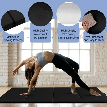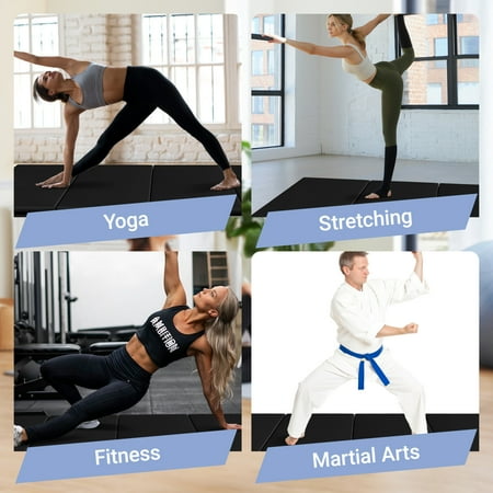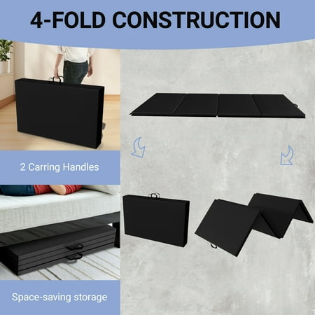 BalanceFrom Versatile 4'x8'x2" High-Density Gym Mats - Extra Thick, Anti-Tear, Easy-Clean, Foldable for Aerobics, Yoga, Martial Arts, with Durable Vinyl and Velcro, Black