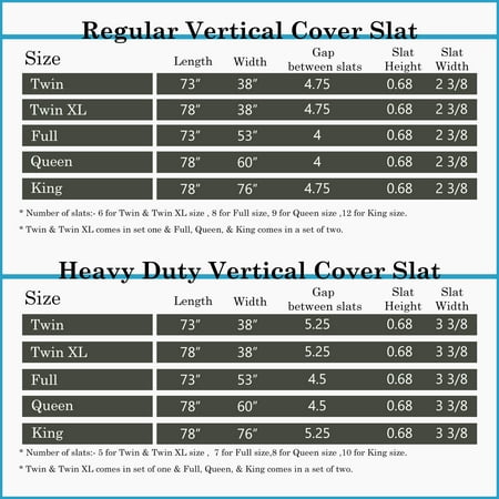 The standard wooden slats provide an excellent surface foundation for any platform beds, bunks, and daybeds. It adds support to any mattress type and will keep the mattress stay in good shape thus extending the life of your mattress the wooden slats made out of black spruce wood are linked to prevent movement during use and they effortlessly extend your mattress's life span and prevent sagging it will give firm bottom support for the mattress these can be avoided with the use of slats using slats doubles the mattress life expectancy these slats is a good alternative instead of a box spring that may be too high for day beds it will give the bed a lift without adding much height these slats is strong enough to be used directly on bed frame instead of a box spring.